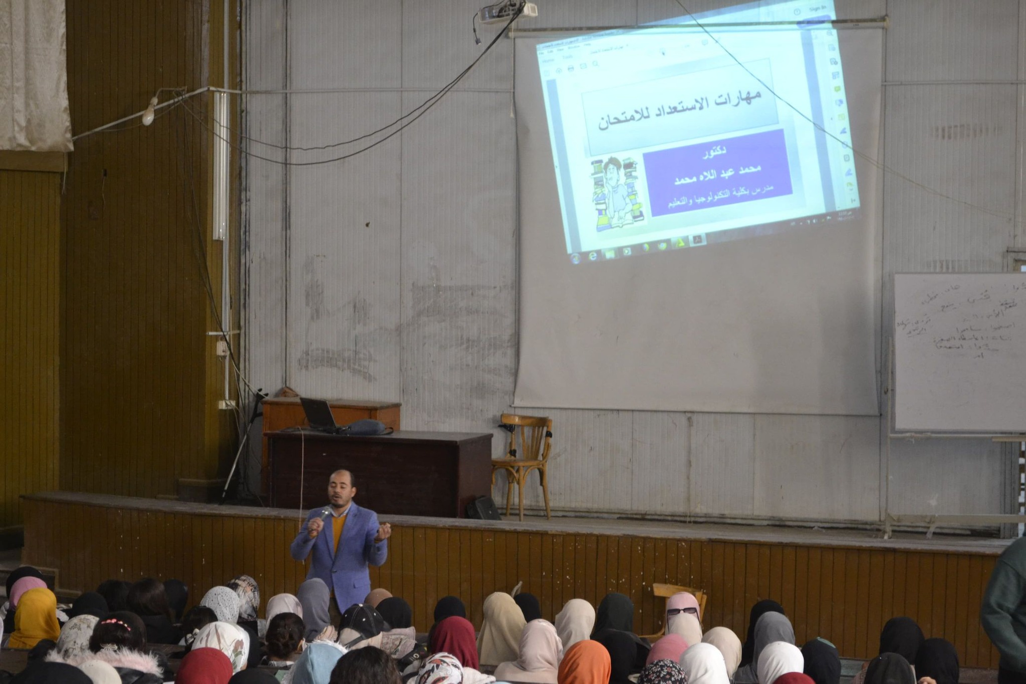 اتحاد طلاب كلية التكنولوجيا والتعليم جامعة سوهاج ينظم ندوة حول مهارات الاستعداد للإمتحانات وكيفية التعامل مع أجواء الامتحانات والتذاكر الصحيح وتجنب الضغوط والقلق