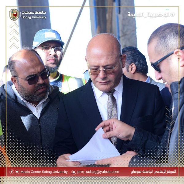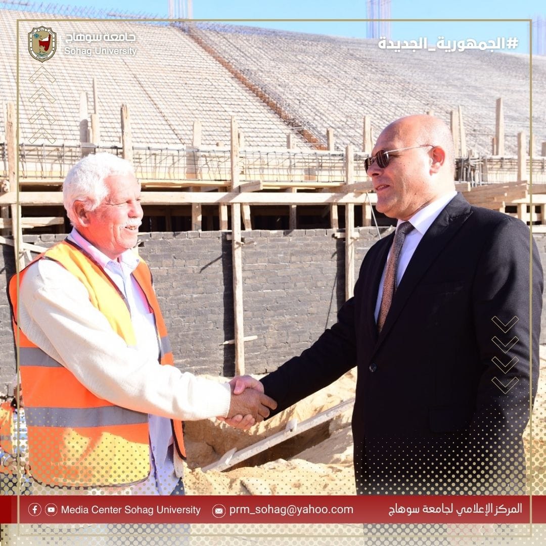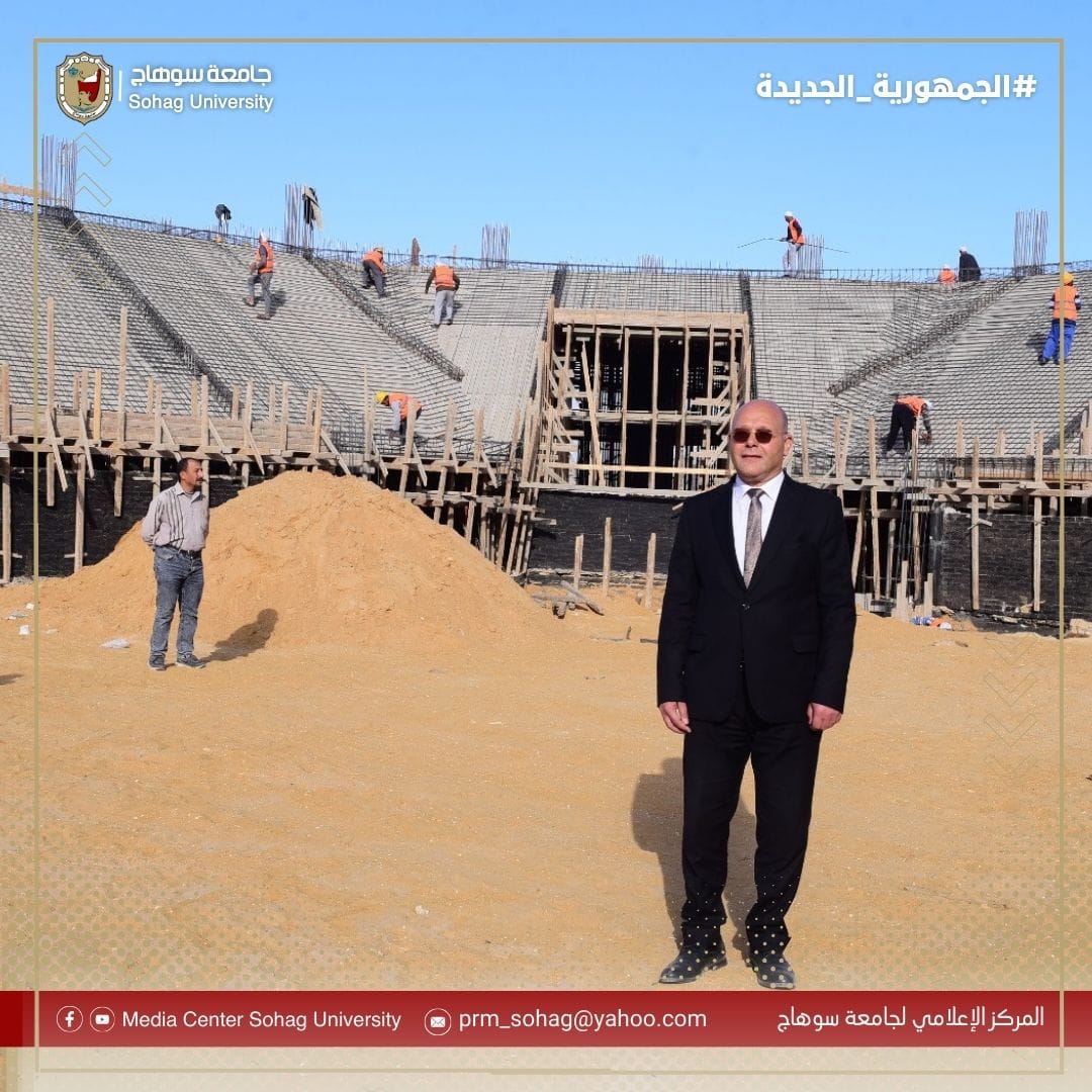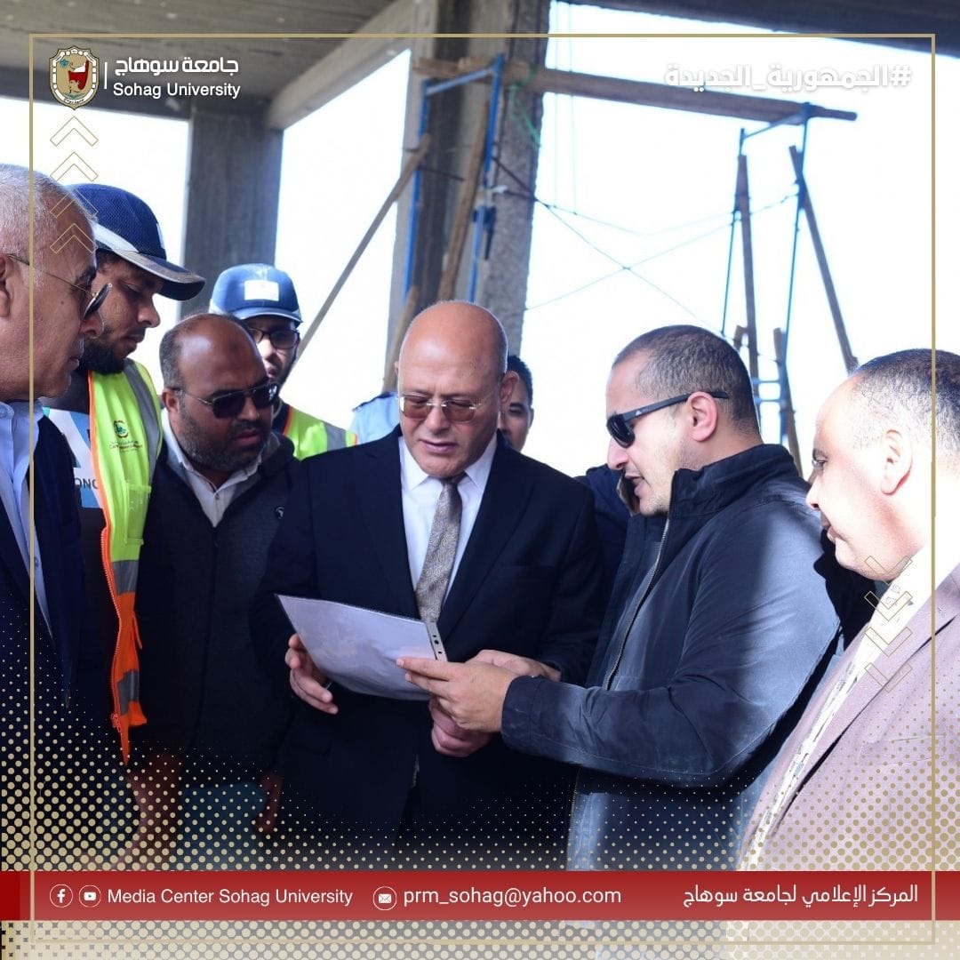 يواصل الدكتور حسان النعماني رئيس جامعة سوهاج جولاته التفقدية لمتابعة الأعمال الإنشائية الخاصة بمشروع، بصالة الألعاب الرياضية الدولية “الصالة المغطاة”الجاري تنفيذها بالحرم الجامعي الجديد، يرافقه الدكتور عبدالناصر يس والدكتور خالد عمران نواب رئيس الجامعة، المحاسب أشرف القاضي امين عام الجامعة، المهندس حسين محمدين مدير الإدارة الهندسية بالجامعة، والمهندس محمد لطفي المدير التنفيذي للمشروع، واللواء طارق حافظ مدير الامن الجامعي.