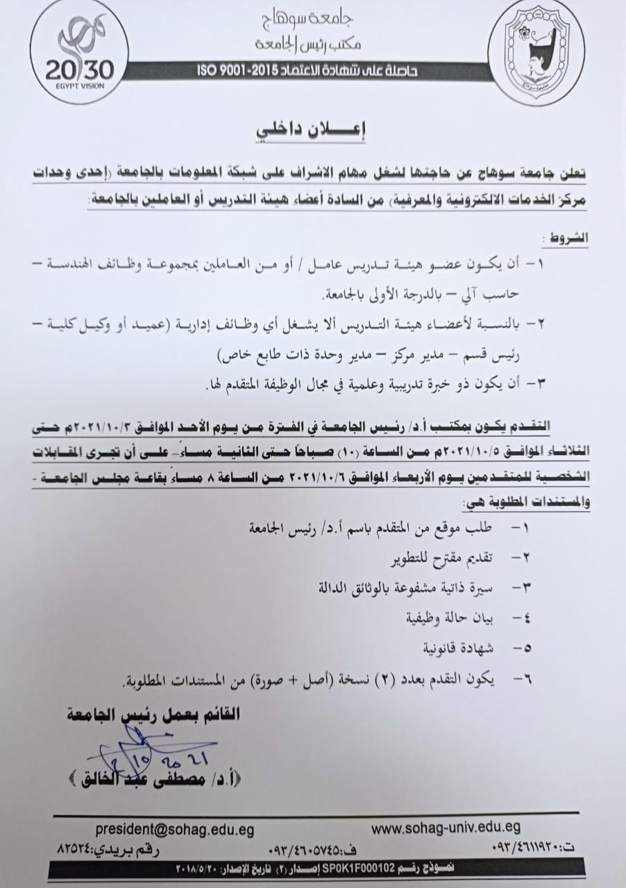 بواسطة walaa mazeedنشر على 6 أكتوبر, 2021نشر في اخبار وفعاليات الكلية اعلان داخلي تصفّح المقالات من أهمها مواليد ١ اكتوبر ٢٠٠٣ جامعة سوهاج تعلن شروط تسكين الطلاب بمدنها الجامعيةتنويه هام