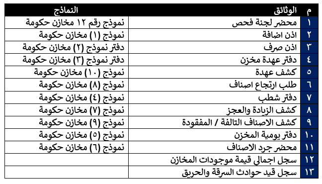 - يتم عمل مطابقة كل ثلاث شهور بالاشتراك مع أمناء المخازن للتأكد من صحة البيانات دون خلل بالدفاتر .
