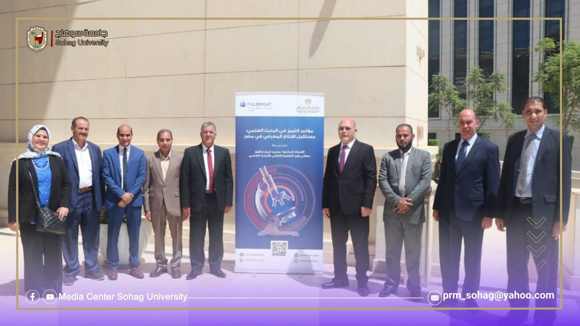 شارك الدكتور حسان النعماني القائم باعمال رئيس جامعة سوهاج في فعاليات مؤتمر التميز في البحث العلمي:مستقبل الإنتاج المعرفي في مصر، الذي اطلقته وزارة التعليم العالي والبحث العلمي بالتعاون مع هيئة فولبرايت، وذلك تحت رعاية وبحضور الدكتور محمد ايمن عاشور وزير التعليم العالي والبحث العلمي وبمشاركة الدكتور مصطفي رفعت امين المجلس الاعلي للجامعات ونواب ومساعدي الوزير، والدكتورة ماجي نصيف المدير التنفيذي لهيئة فولبرايت، ورؤساء الجامعات الحكومية والخاصة والمعاهد البحثية حيث اقيمت فعاليات المؤتمر ظهر اليوم بفندق سانت ريجيس الماسة بالعاصمة الإدارية الجديدة.