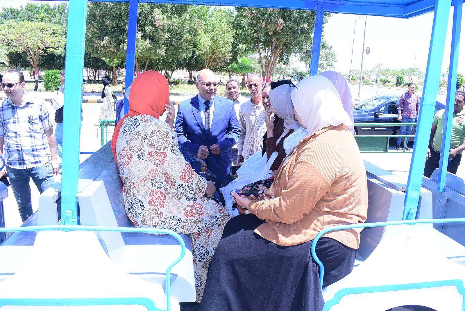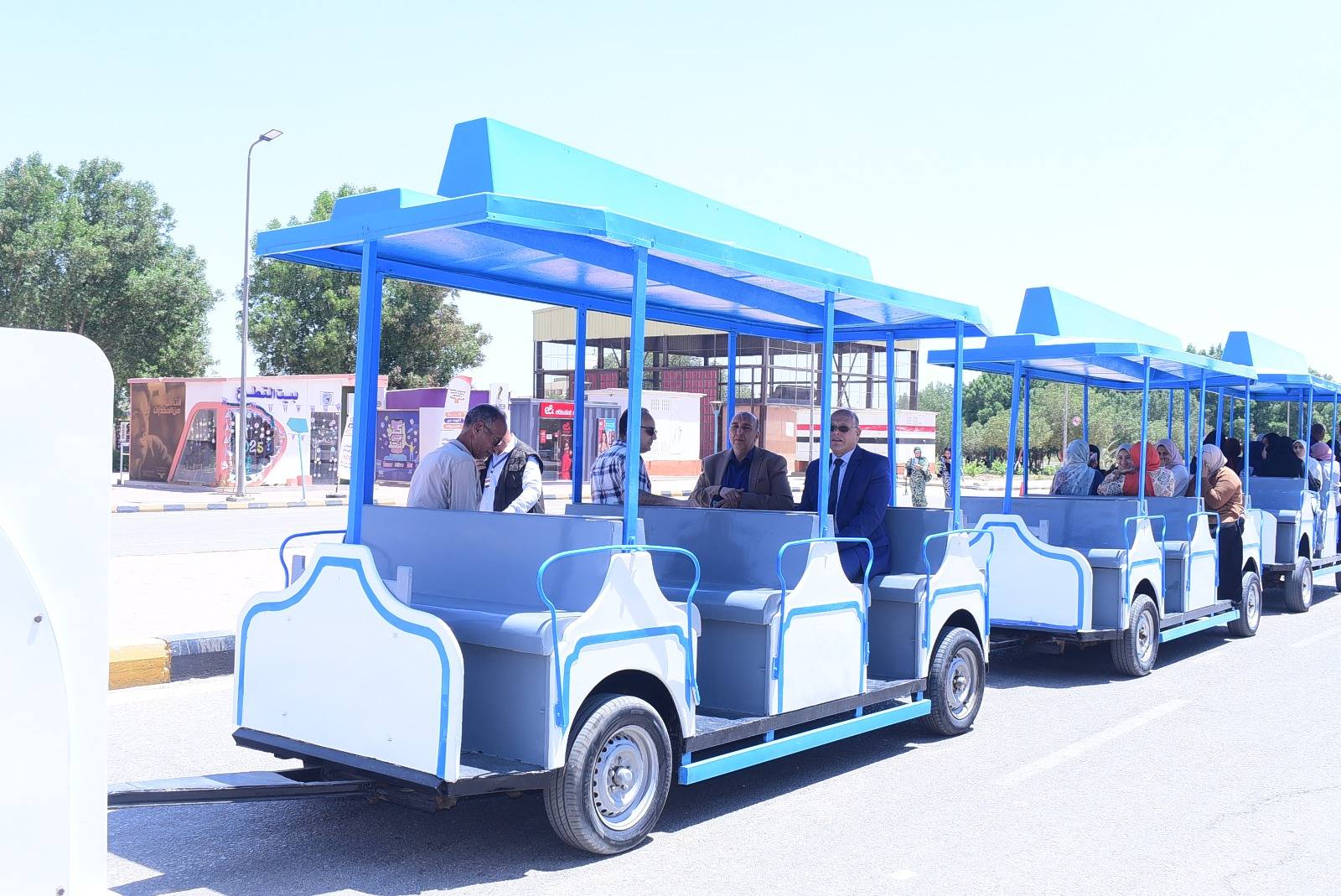 حيث تم تشغيل عدد 2 طفطف كل منهم يتكون من عربيتين، حيث تسع كل عربة عدد 30 طالب بإجمالي 120 طالب وطالبة.