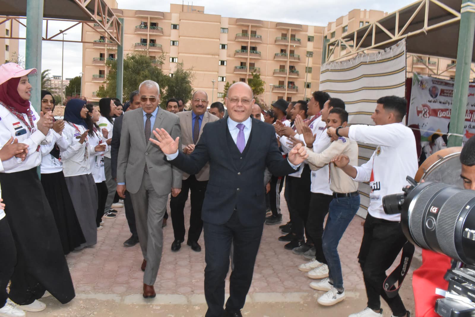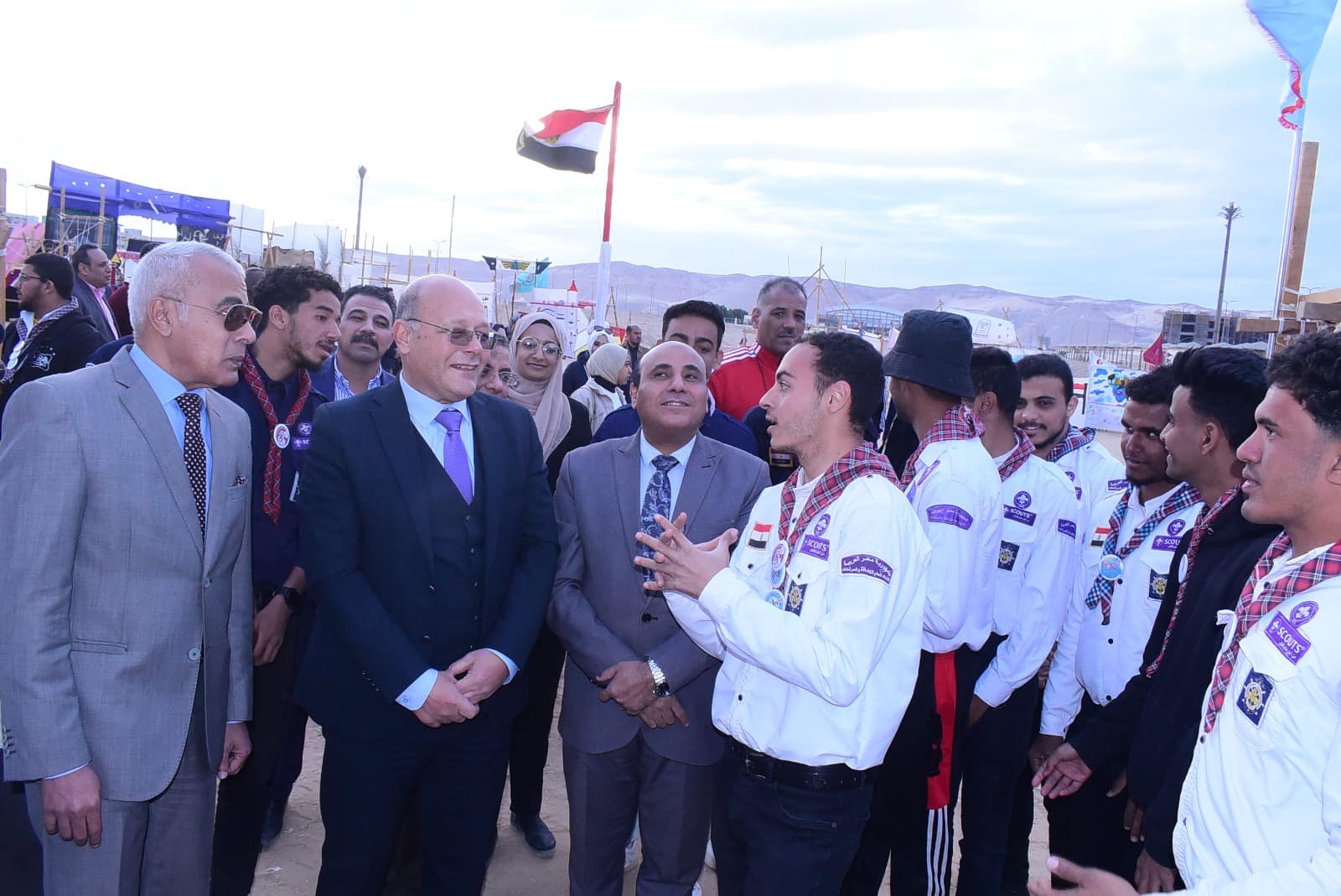 النعماني يشارك ٢٠٠ طالب وطالبة بالمهرجان الكشفي والإرشادي الثامن لجوالي وجوالات الكليات ويوافق علي اقامة المخيم الدائم للجوالة بجامعة سوهاج الجديدة*