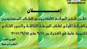 أعلنت الإدارة العامة للمدن الجامعية والتغذية بجامعة سوهاج فتح الموقع الالكتروني للطلاب المستجدين بالفرقة الأولي” المرحلة الثالثة والدور الثاني للثانوية العامة” ابتداء من اليوم وحتي يوم الخميس الموافق 14 سبتمبر الجاري.