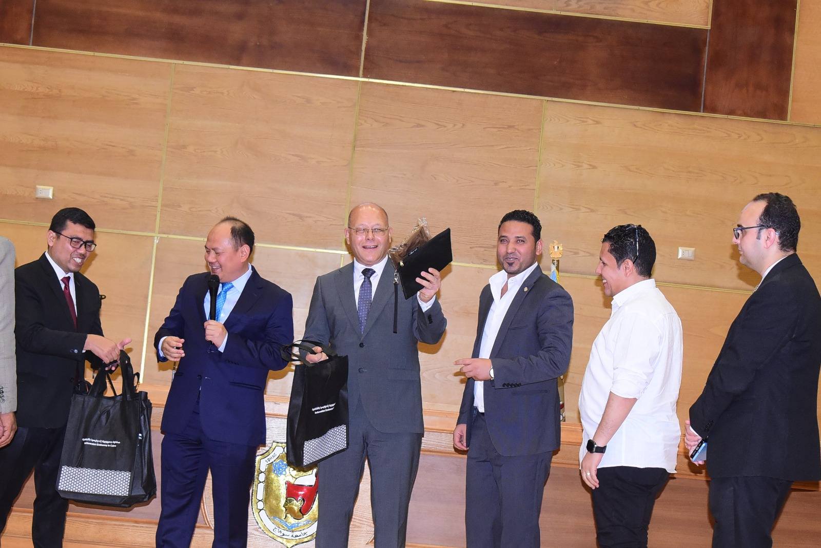 شهد الدكتور حسان النعماني رئيس جامعة سوهاج و السيد محمد زعيم الخالص ناسوتيون نائب سفير جمهورية اندونيسيا بالقاهرة فعاليات اليوم الثقافي المصري الاندونيسي، والذي نظمه مركز العلاقات الدولية والتعاون الدولي بالجامعة، بحضور، الدكتورعبد الناصر يس والدكتور خالد عمران نواب رئيس الجامعة والدكتور رحمت أمينج لاسم مستشار رئيس القسم الإعلامي والثقافي والاجتماعي، والدكتور اشرف عكاشه المدير التنفيذي للمركز، ولفيف من عمداء الكليات و أعضاء هيئة التدريس والطلاب، وذلك بالمركز الدولي للمؤتمرات بالحرم الجامعي الجديد.