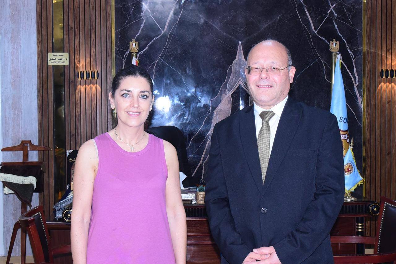 استقبل الدكتور حسان النعماني رئيس جامعة سوهاج الدكتورة ماريا ديل مار، أستاذ ورئيس قسم التخدير بكلية الطب البيطري بجامعة قرطبة بإسبانيا، وذلك خلال زيارتها لكلية الطب البيطري بالجامعة ضمن برنامج “إيراسموس بلس” للتبادل الأكاديمي بين الجامعتين. بحضور الدكتور اسامة حسن ابو شامه عميد الكلية، الدكتور بهاء الدين رئيس قسم الجراحة والتخدير والأشعة بالكلية والدكتور إيهاب قطب، منسق برنامج “إيراسموس” بالجامعة، والدكتور احمد عبد الحفيظ مدرس مساعد بالكلية.