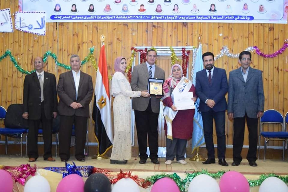 تهنئ كلية التعليم الصناعي والدة الطالبه ياسمين حمدى بالفرقة الرابعة لتكريمها ضمن الامهات المثاليات علي مستوى الجامعة