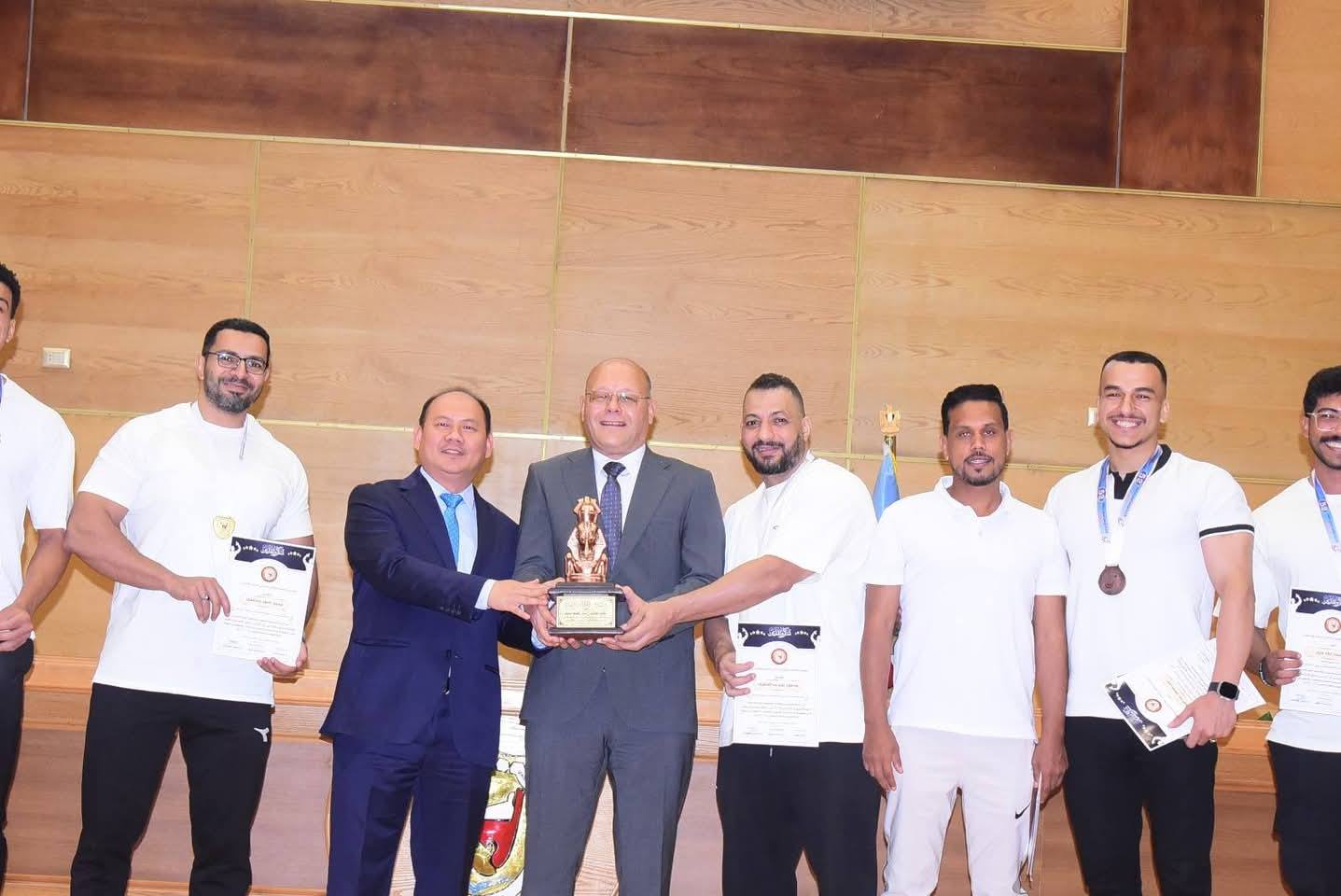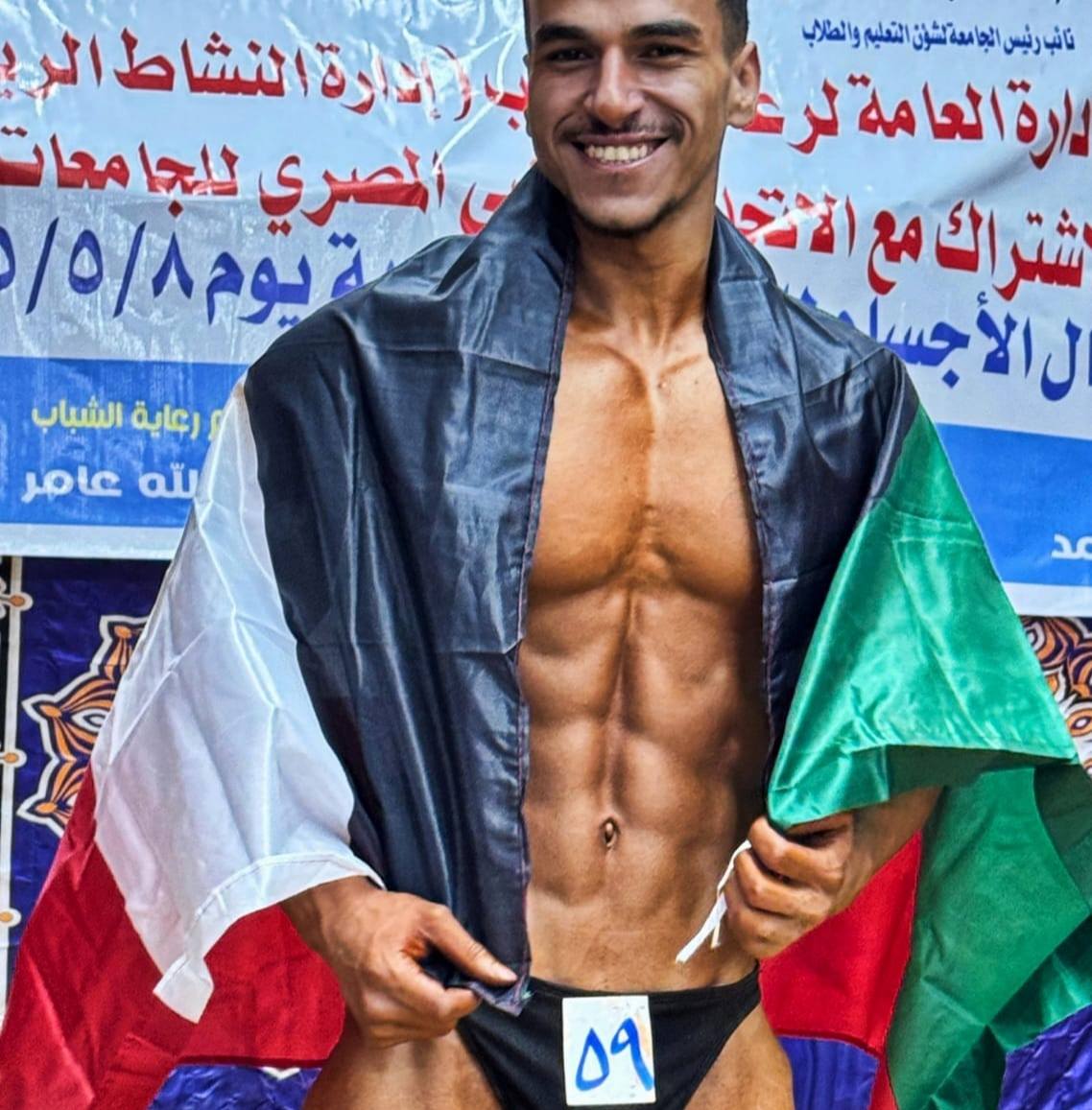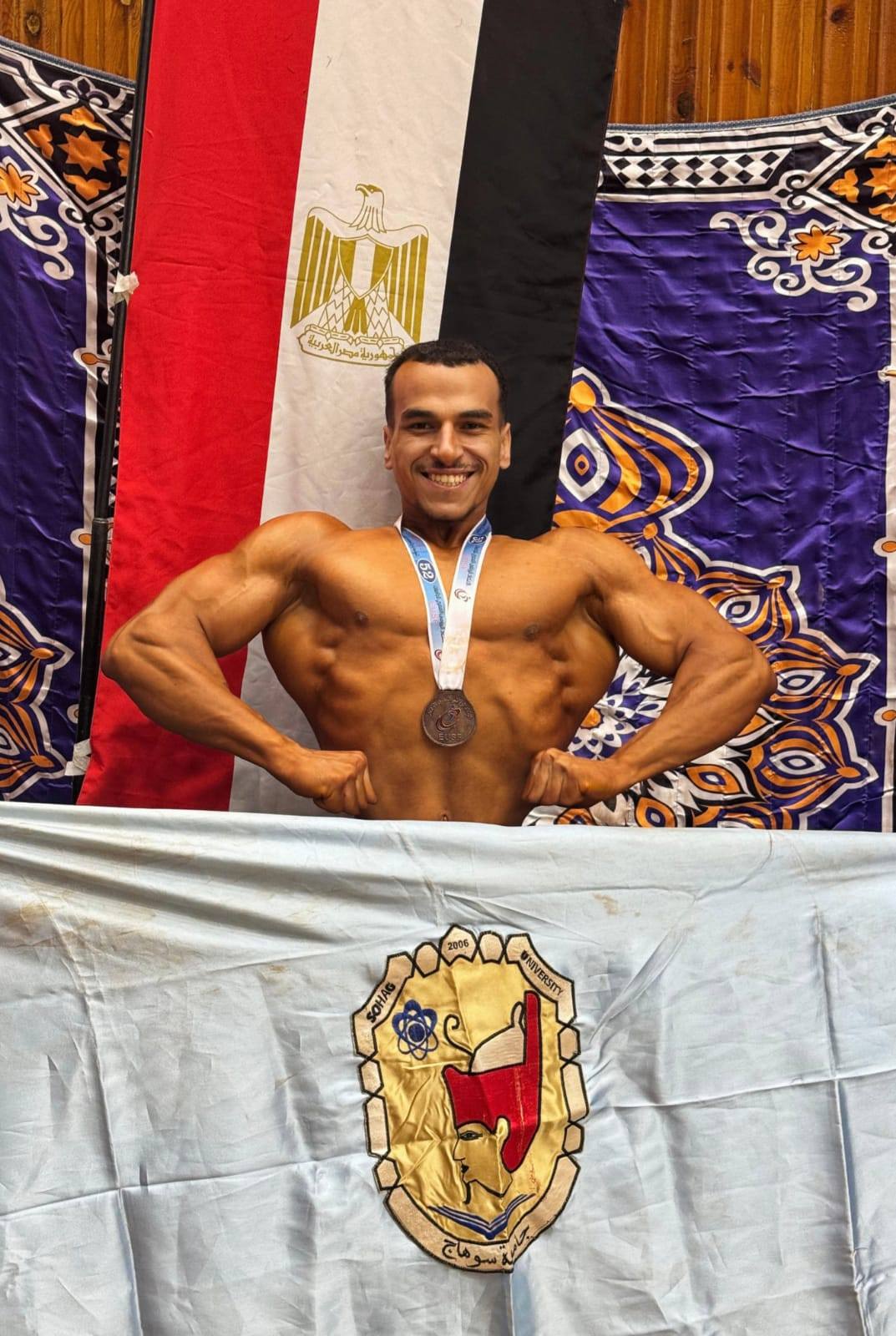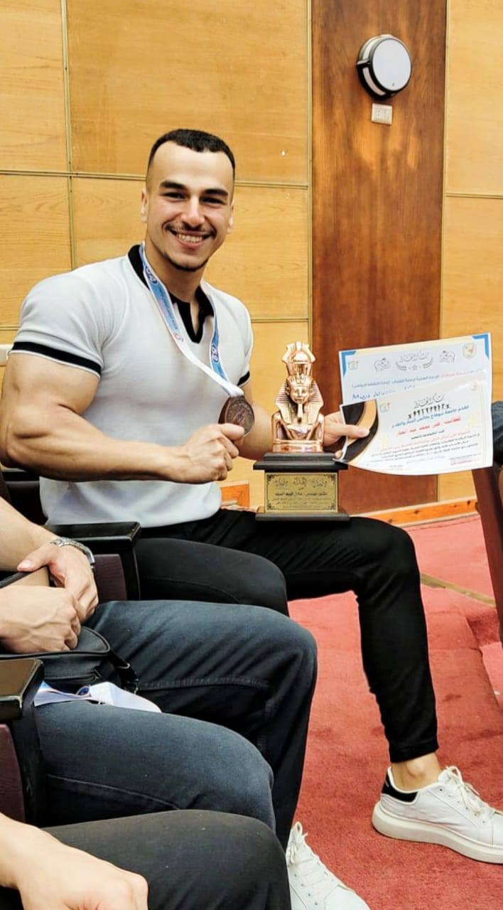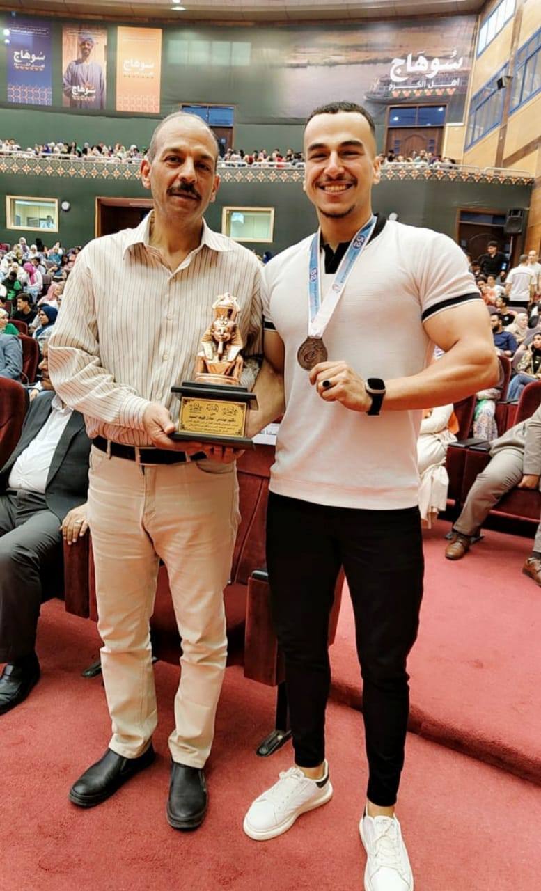 وذلك كونه ضمن فريق جامعة سوهاج والفائز بالمركز الأول والميدالية الذهبية على مستوى الجمهورية في بطولة الجمهورية للجامعات المصرية في رياضة كمال الأجسام