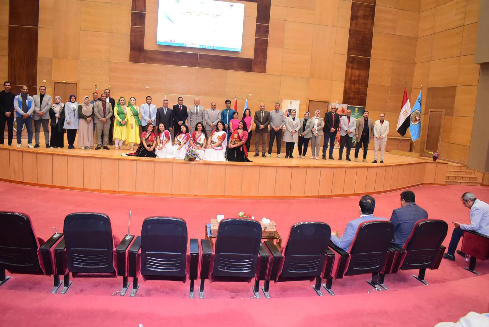 إستضافة جامعة سوهاج بقيادة الدكتور حسان النعماني رئيس الجامعة فعاليات اليوم الثقافي الهندي والذي نظمه مركز العلاقات الدولية والتعاون الدولي بالجامعة، بحضور الدكتور بركاش كومار شوديري المستشار الثقافي لسفارة الهند ومدير مركز مولانا أزاد الثقافي الهندي، الدكتور عبد الناصر يس والدكتور خالد عمران نواب رئيس الجامعة، وعمداء الكليات، والدكتور أشرف عكاشة المدير التنفيذي للمركز، ولفيف من أعضاء هيئة التدريس والطلاب من مختلف الكليات، وذلك بالمركز الدولي للمؤتمرات بالحرم الجامعي الجديد.