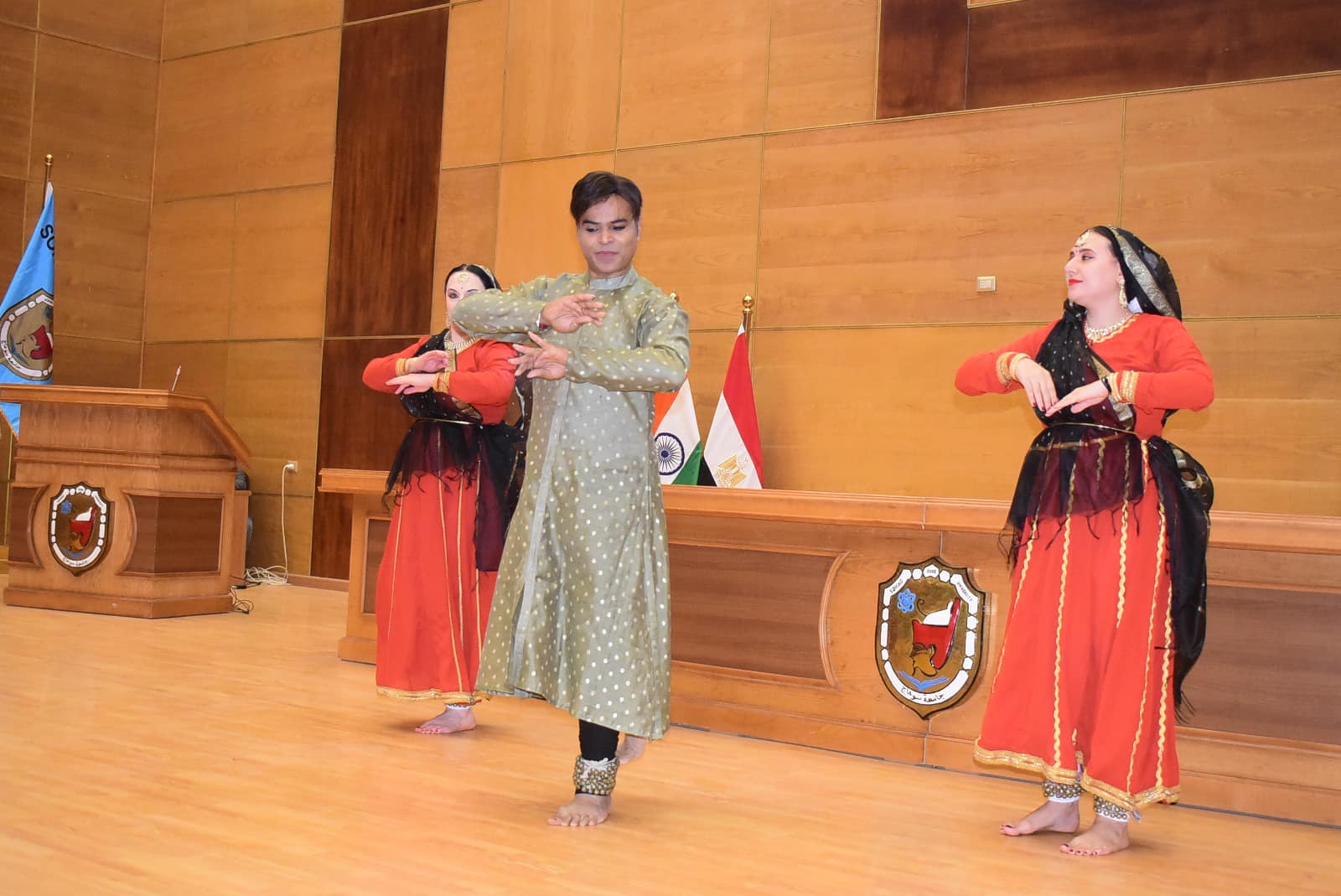 وخلال كلمته، رحّب الدكتور حسان النعماني بالمستشار الثقافي لسفارة الهند، مؤكدًا على أن هذا الحدث الثقافي يعكس حرص الجامعة على مد جسور التواصل مع الدول الصديقة وتعزيز التعاون الأكاديمي والعلمي بين مصر والهند، إلى جانب إثراء معارف الطلاب بالاطلاع علي ثقافات وحضارات الشعوب الأخرى.