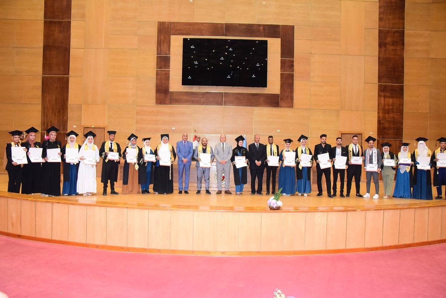 وفي نهاية الفاعليه كرم رئيس الجامعة وعميد الكلية الطلاب الخريجين والتقاط الصور التذكارية معهم.