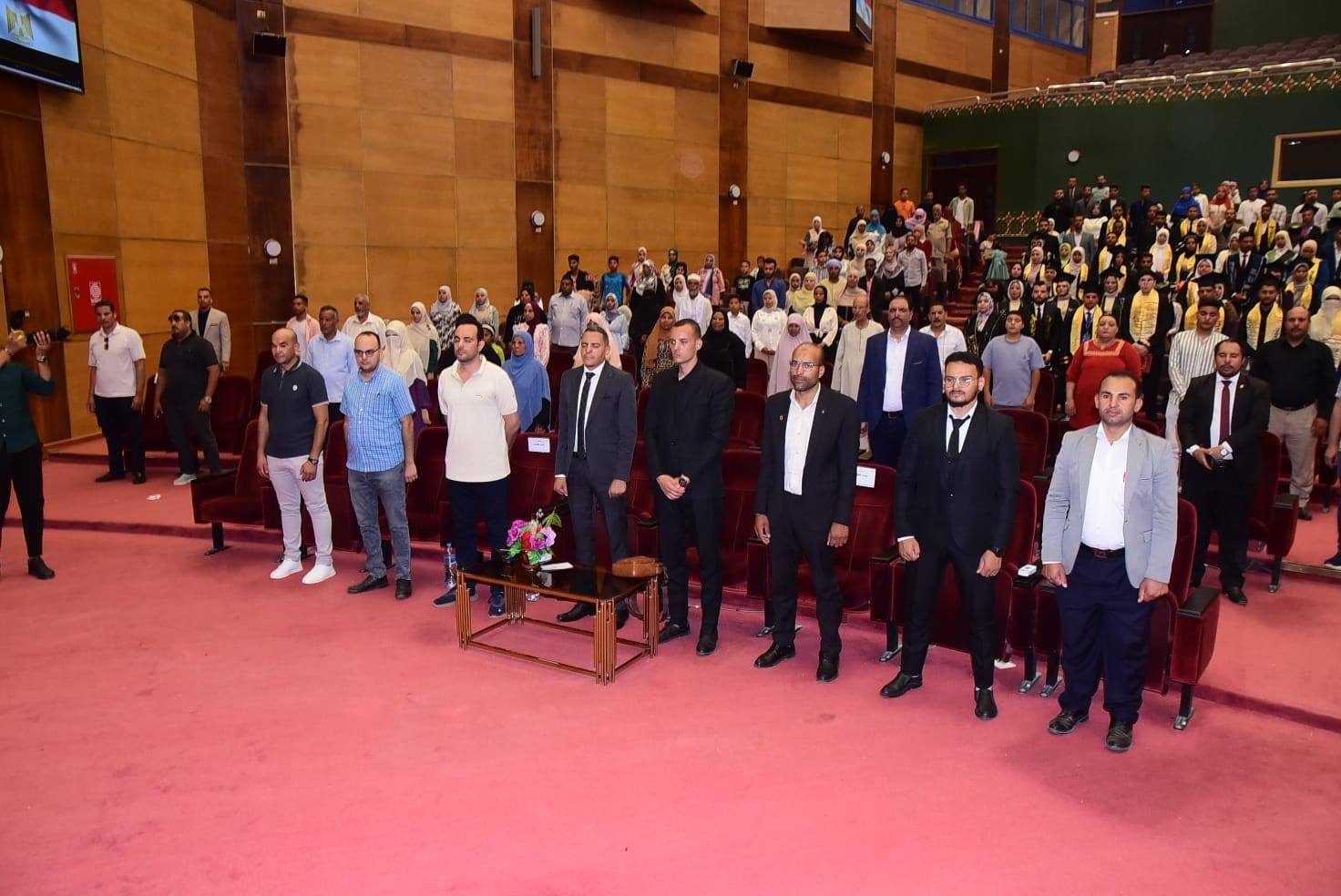استهلت جامعة سوهاج، برئاسة الدكتور حسان النعماني، فعالية تخريج الدفعة ال١٦ من كلية التكنولوجيا والتعليم بالوقوف دقيقة حداد على أرواح الـ 19 فتاة من بنات قرية المنوفية.