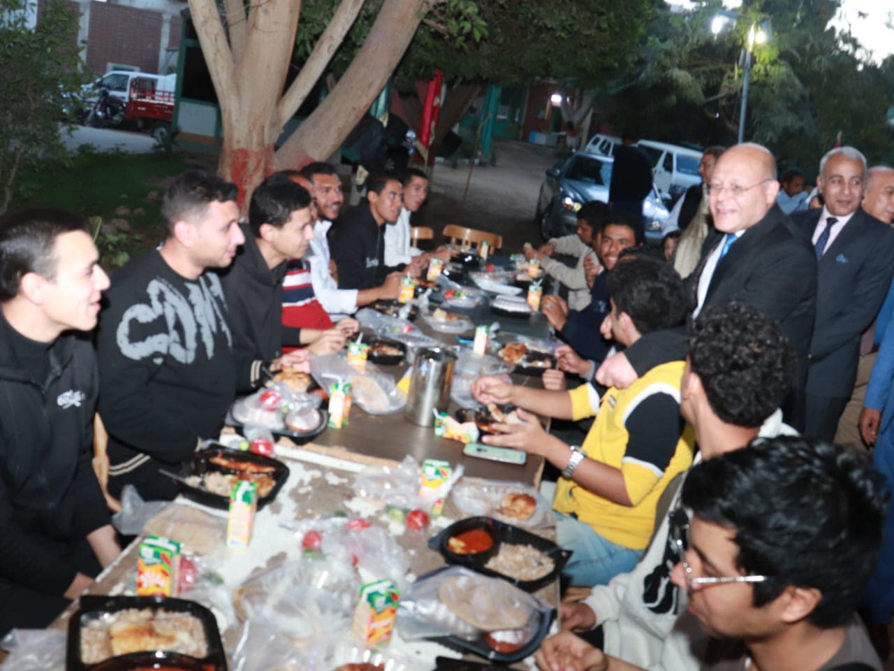 وقال الدكتور عبد الناصر يس ان إدارة الجامعة تحرص على مشاركة الطلاب فى جميع الفعاليات والمناسبات الاجتماعية، الأمر الذي يساهم في تنمية مشاعر الأخوة والترابط ومد أواصر الود والألفة بين الطلاب والقيادات الجامعية.