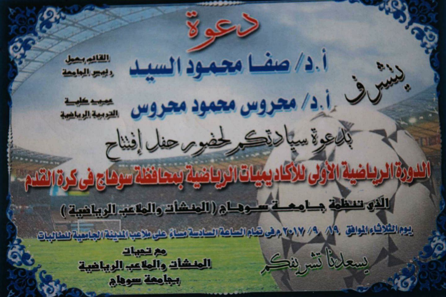 بواسطة walaa mazeedنشر على 18 سبتمبر, 2017نشر في اخبار وفعاليات الكلية دعوة لحضور حفل افتتاح بطولة الدورة الرياضية الأولى تصفّح المقالات أول فضية لجامعة سوهاج في النشاط العلميعبد الرحيم مشرفاً على عمادة كلية التعليم الصناعى