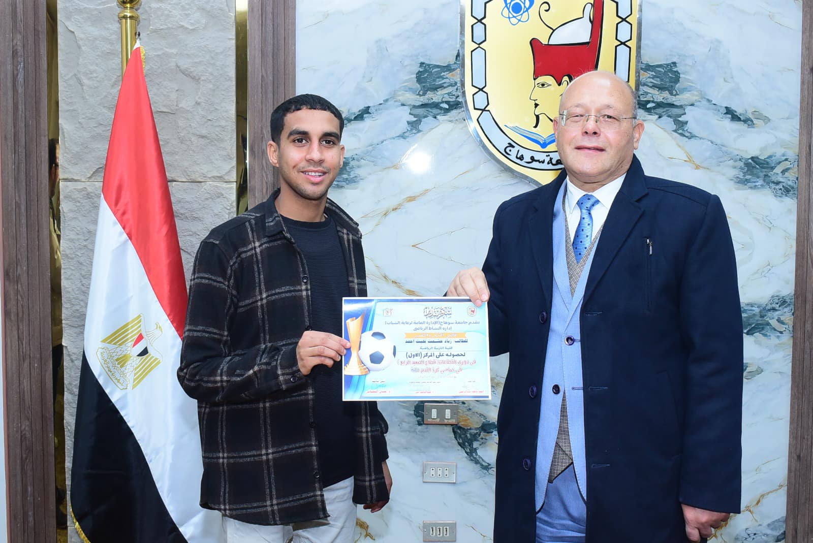 *رئيس جامعة سوهاج يكرم الطلاب الفائزين بالمراكز الأولى على مستوى الجامعات في الملتقيات الرياضية والثقافية والفنية*