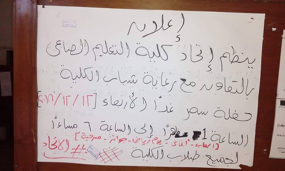 بواسطة walaa mazeedنشر على 11 ديسمبر, 2018نشر في اخبار وفعاليات الكلية ينظم اتحاد كلية التعليم الصناعي بالتعاون مع رعاية الشباب بالكلية حفل سمر وذلك غدا يوم الاربعاء 12/12/2018 غدا .. ينظم اتحاد كلية التعليم الصناعي حفل سمر تصفّح المقالات كلية التعليم الصناعي تهنئ الدكتور احمد سلامة والدكتور محمد عليكلية التعليم الصناعي تكرم الطلاب الفائزين بمجلة الحائط