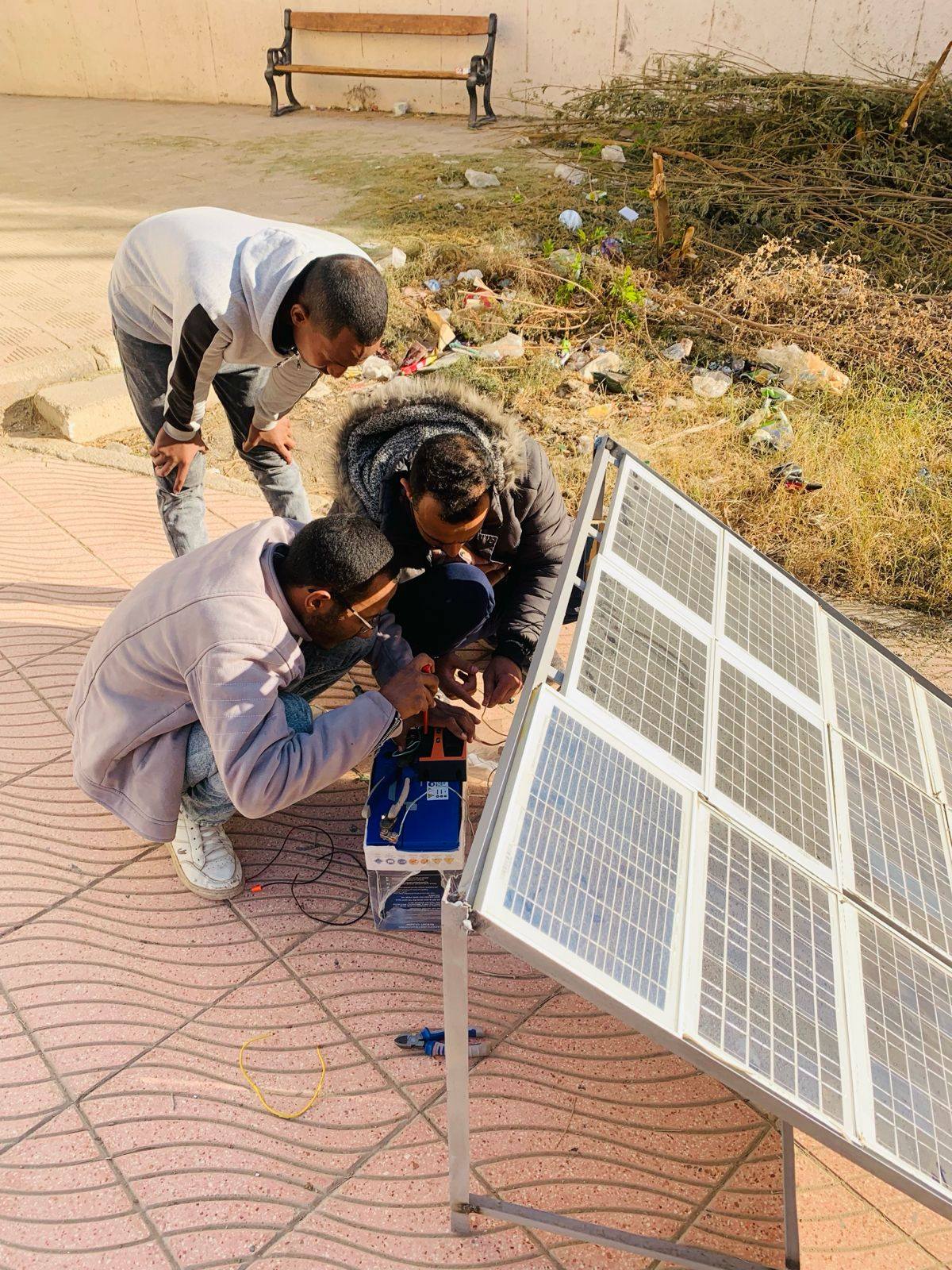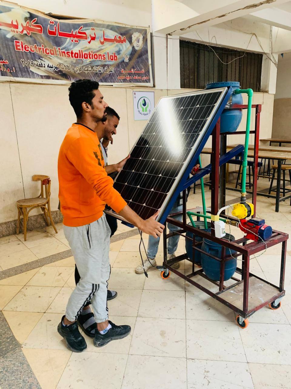 في مشروع بعنوان (( رفع المياه من مستوي إلي مستوي عن طريق الطاقة الشمسية ))