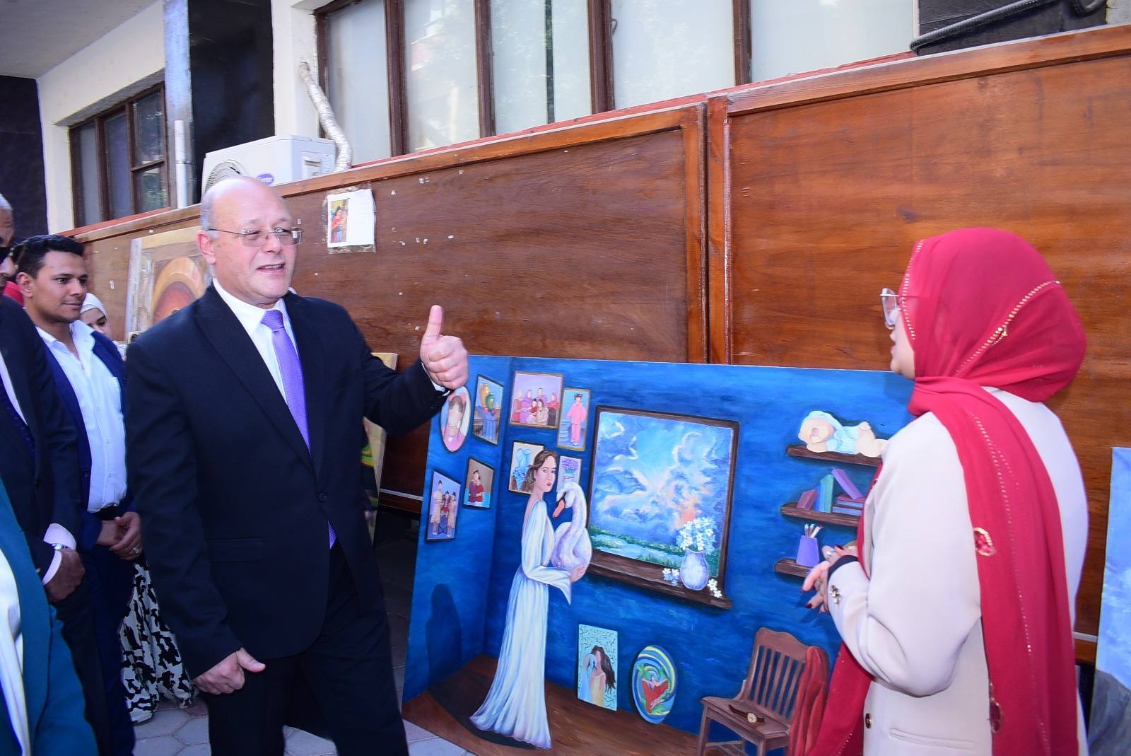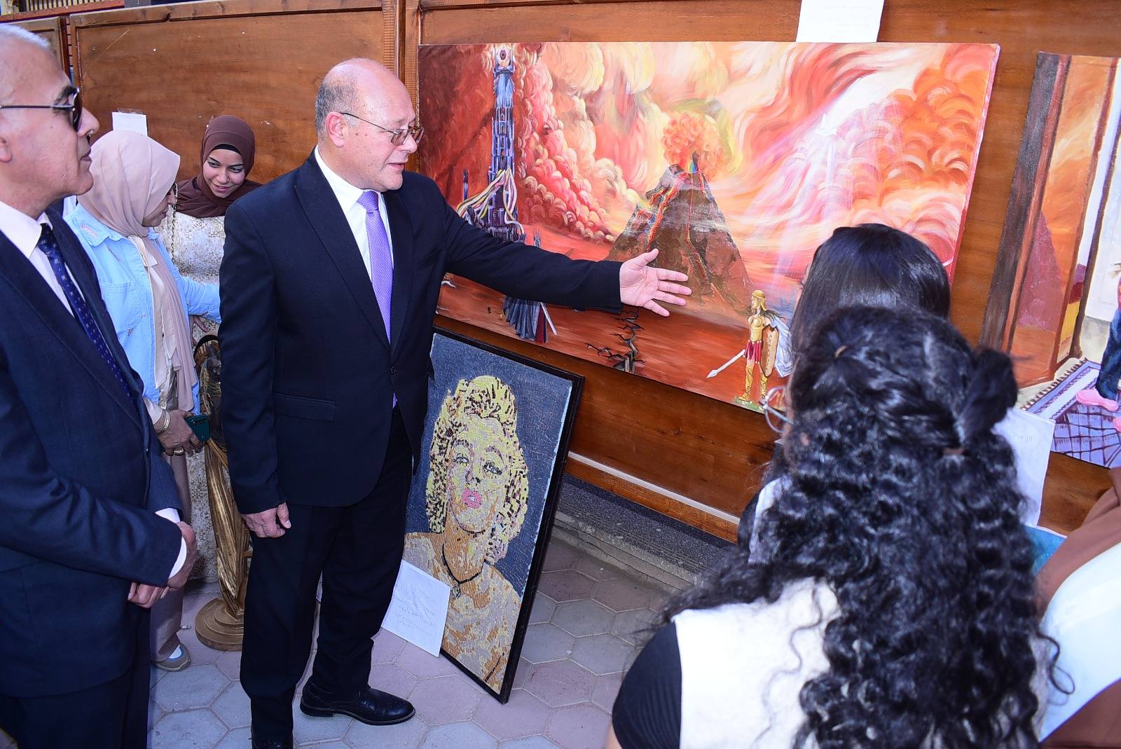 واشاد رئيس الجامعة بحجم الإبداع الطلابي وما تم عرضه من مشروعات تمثل التراث السوهاجي بشكل خاص والمصري بشكل عام، بتقنيات متعددة أظهرت مهارات الطلاب ونبوغ افكارهم وتعدد أساليبهم الرائدة التي تجمع بين العلم والتطبيق، وتخدم أهداف التنمية، وتُسهم في بناء جيل يساهم في إثراء الجانب الوجداني، والإبداعي، مستمعاً في ذلك لشرح مفصل، حول فكرة المعرض، وما يتضمنه من أعمال فنية.