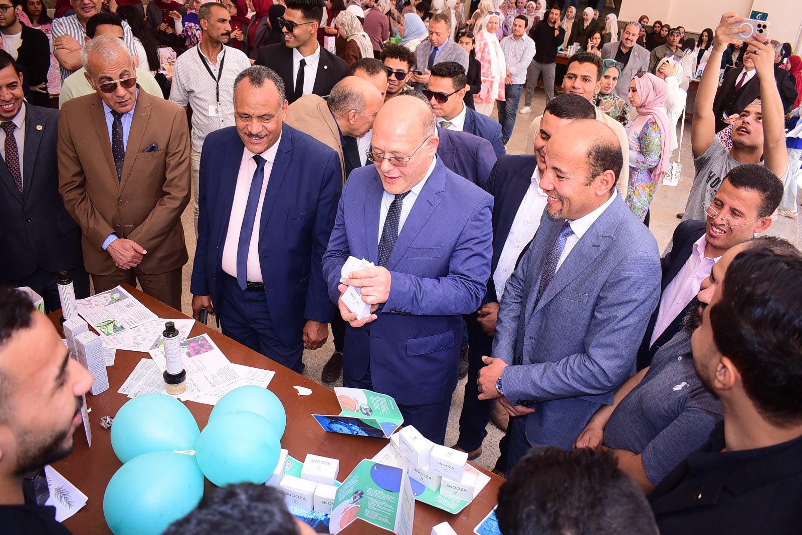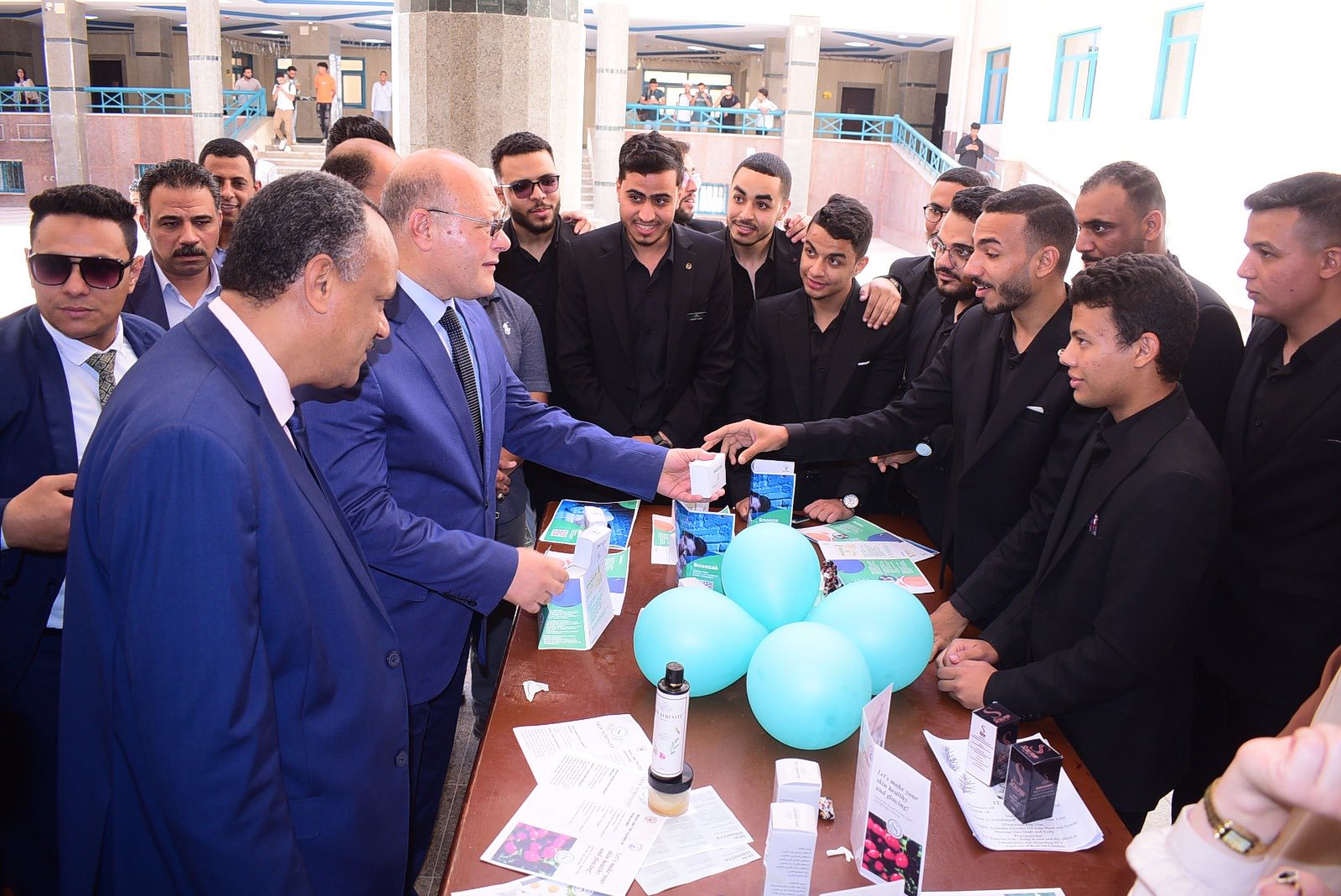 وأوضحت الدكتوره هبة على حسن أن رئيس الجامعة استعرض المنتجات والمستحضرات المختلفة المحضرة بواسطة الطلاب، وأثنى علي مجهوداتهم داعيا الطلاب بالاستمرارية وتطوير أفكارهم لتكوين شركات لإنتاج مثل هذه المستحضرات على نطاق واسع، حيث أنه يتم تجربة هذه المنتجات علي حالات مرضية لاختبار فاعليتها، و تجهيزا لانتاجها وإخراجها للسوق المحلي.