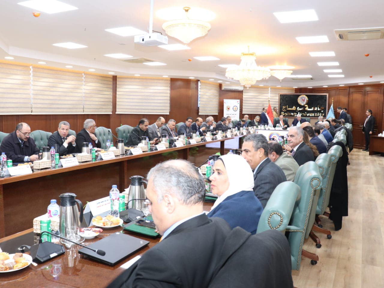 قدم المجلس الشكر لأسرة جامعة سوهاج برئاسة الدكتور حسان النعماني رئيس الجامعة على استضافة اجتماع المجلس الأعلى للجامعات.