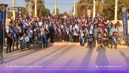 Sohag University participated in a group of students with disabilities to represent the university in the summit meeting for students with outstanding abilities in Egyptian universities and institutes under the slogan of“Creators with a difference”, which was organized by the Leadership Development Institute, under the auspices of Prof. Ayman Ashour, Minister of Higher Education, with the participation of 200 male and female students from various universities and Egyptian institutes.